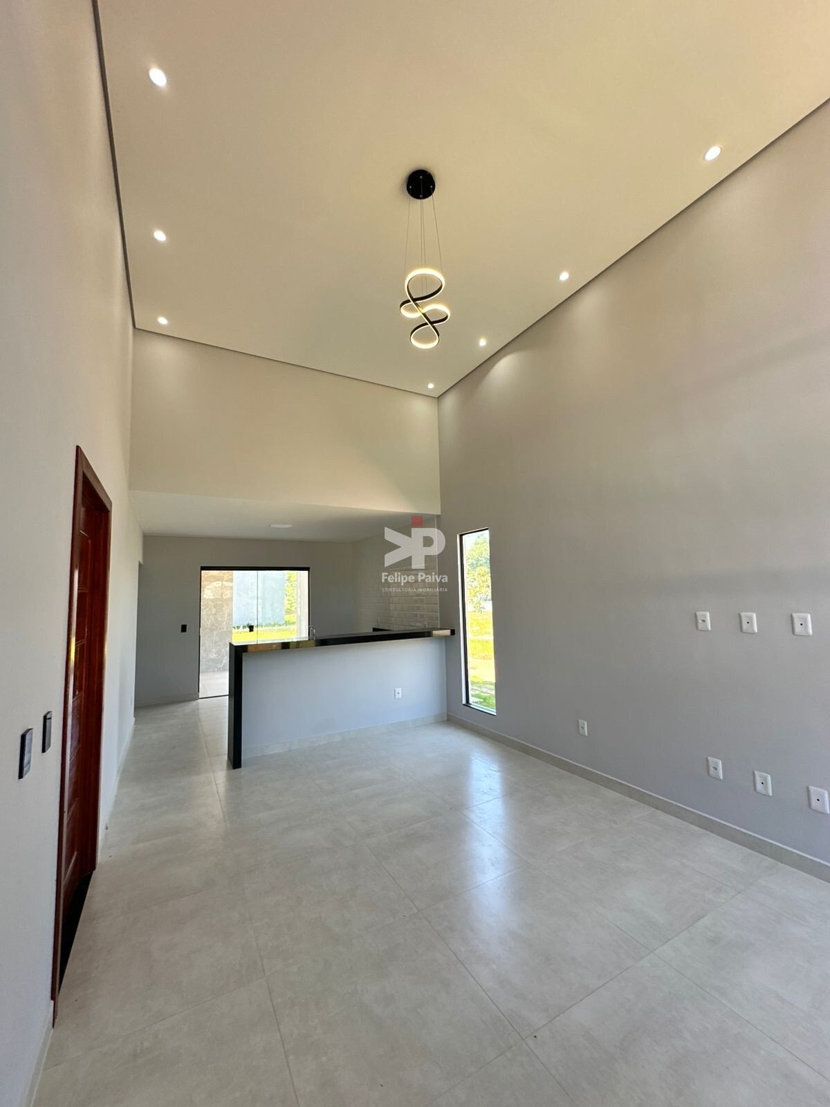 Sala espaçosa com pé-direito alto, que valoriza a iluminação natural e proporciona maior sensação de amplitude